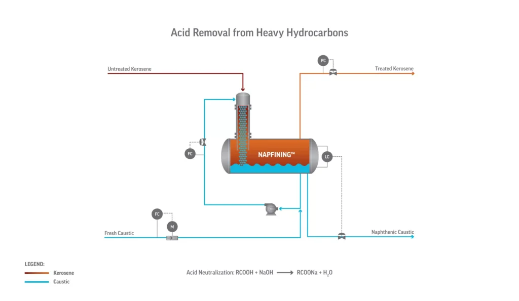 • Proven, highly efficient pre-treatment process to remove naphthenic and carboxylic acids from heavy naphtha, kerosene, jet fuel, diesel, condensates and light crude oils with minimal emulsion formation